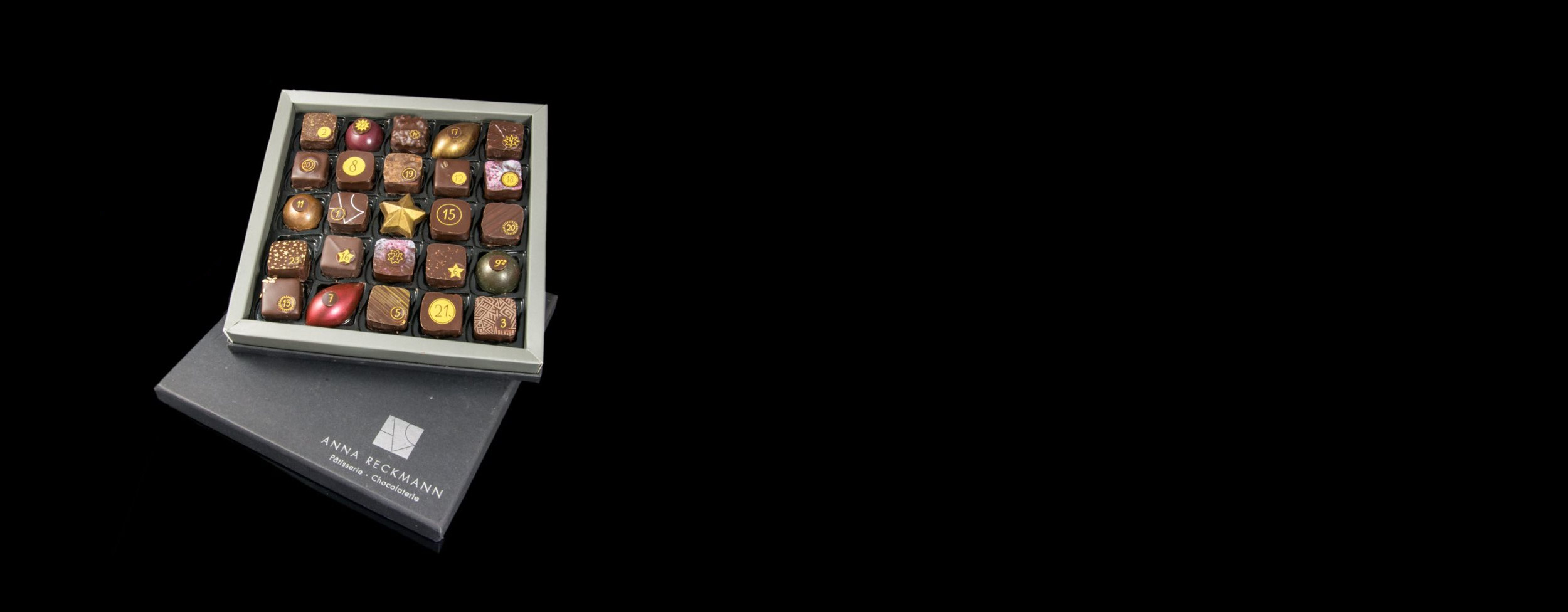Die einzigartigen Pralinen-Kompositionen von Anna Reckmann aus Frankfurt am Main sind preisverdächtig und wurden bereits mehrfach mit den International Chocolate Awards für die DACH-Region ausgezeichnet. Die Pralinen-Box „Weihnachtszauber“ ist ein wunderbares Geschenk für die Familie, Geschäftspartner, Freunde – und natürlich zum Selbernaschen.Neben einigen beliebten Klassikern finden Sie in der Weihnachtsbox die diesjährigen Weihnachtssorten wie:Pekan-SpekulatiusFeige-Dulcey-HaselnussZimtstern deluxePekan-KnusperLebkuchennougatMandarine-KnuspermandelSpekulatius-KaramellWeihnachtspunschKaffee-KardamomWintersonne (Maracuja & Sternanis)CeylonzimtPiemonteser Haselnuss mit Salzpure origin: Dominikanische RepublikWeihnachtsmarzipan In dieser bunten Mischung findet garantiert jeder seine persönlichen Lieblingspralinen. Hübsch verpackt im schwarz-grauen Karton mit Weihnachtslogo, kommt die Pralinen-Box „Anna Reckmann – Weihnachtszauber“ frisch und sicher bei Ihnen an.Die Pralinen-Auswahl „Anna Reckmann Weihnachtszauber“ enthält:25 Pralinen (ca. 240 g) handgefertigt aus der Pâtisserie Anna ReckmannFür den optimalen Genuss gekühlt (ideal: ca. 14-16 °C) lagern und innerhalb von 3 Wochen genießen.MHD: ca. 3-4 WochenSoll die Pralinenbox ein Weihnachtsgeschenk sein, vermerken Sie es bitte im Bestellkommentar, dann versenden wir Die Pralinen frisch in der Weihnachtswoche.